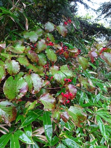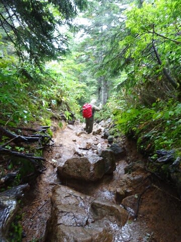 いったん下って、また登って、雨と汗でぐちゃぐちゃびっしょり。1時間で