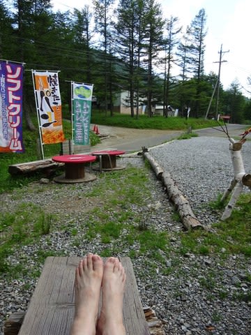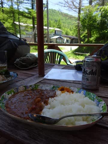途中、ザーッと雷雨で山荘の談話室でまったり飲んで。