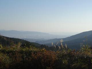 この公園からの眺めは最高です 霞んでいるけど、遠くには相模湾が見えます。