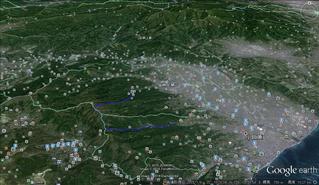 そして、PCにこんなGooglemapでルートも送れました。ちいさくてわからないかな?青い線が歩いたルートです。