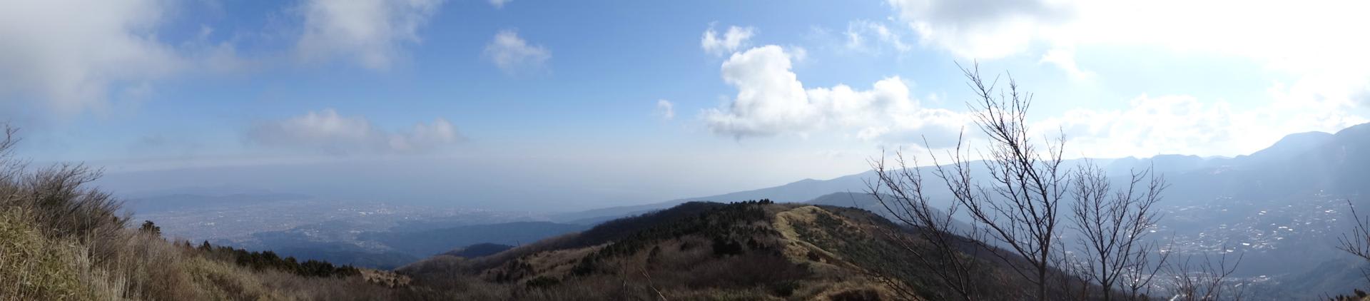 右を見ると、湘南の町や海、左を見ると、箱根の町と山。