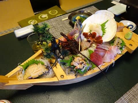 この舟盛、イセエビにアワビにサザエと、9種類の魚貝が盛りだくさん。