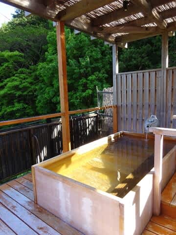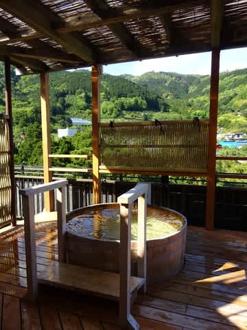 ここの旅館は、小さいけれど、展望貸切露天風呂が2つもあるんです。