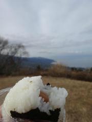ストレッチ仲間からもらった、手作り梅干しのおにぎりで腹ごしらえ。