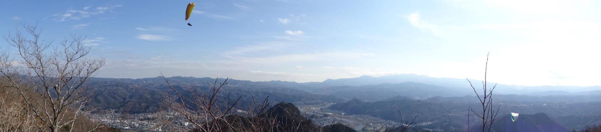 頂上直下にパラグライダーの乗り場?があって、パラグライダーがたくさん。