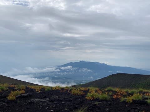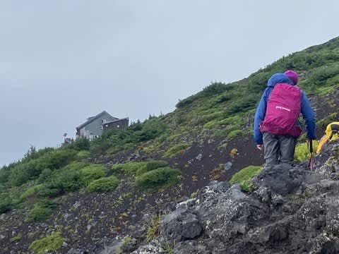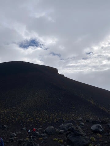 火口からまた登って富士宮ルートの6合目が見えて来ました。