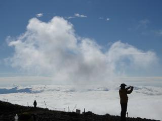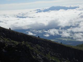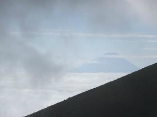 そして、カメラを横岳の横に向けるとうっすら雲からそびえたつ…富士山