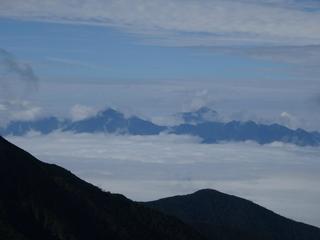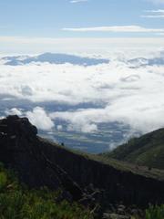 後ろを振り返ると、八ヶ岳の山々。一番遠くに見えるのは蓼科山。