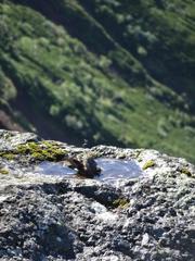 すると、岩のくぼみに出来た水たまりでイワヒバリが行水を始めました。