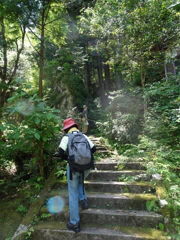 小さな川を何度も渡り、丸太も乗り越え、登ること1時間なかったかな。