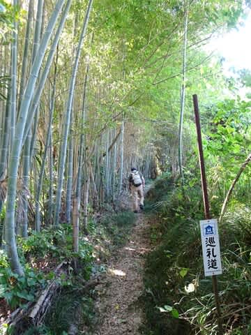 竹藪の中の巡礼路を歩いていると、