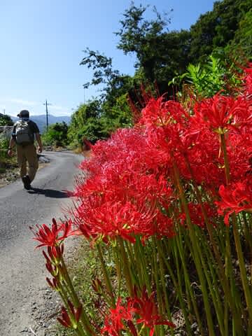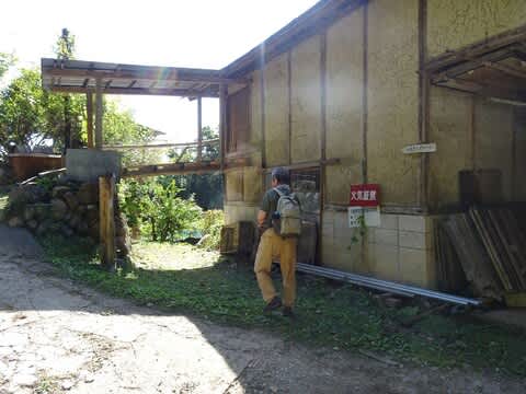 けっこう滑りやすい山道を下って下って、ようやく民家に出ました。