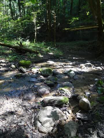 小川を越えてまた登って、今度は集落に出ました。