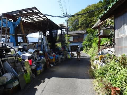 わ~すごい。両側にモノがあふれたお宅の前を通って、