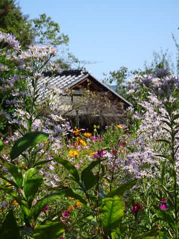 奥の民家は廃屋ですが、まるでお花畑。