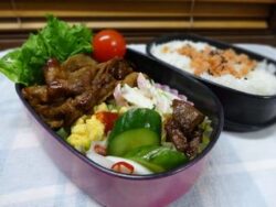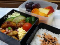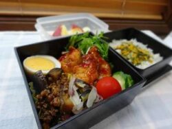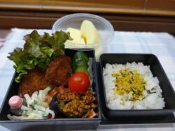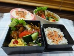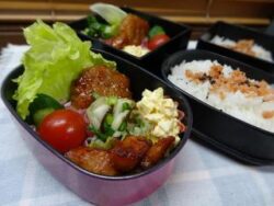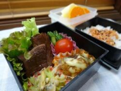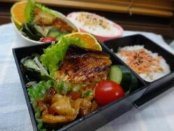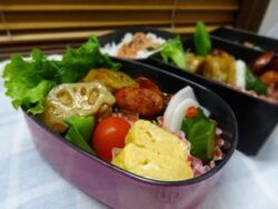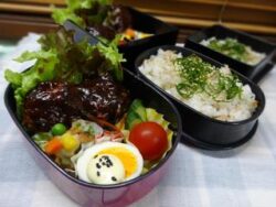 蓮根鶏肉はさみの照り焼き焼きのお弁当と、心配
