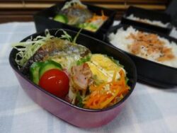 おはようございます今日も素敵なお天気ですね。今日のお弁当・ウィンナフライ・サバみりん焼き・千切りキャベツ・きゅうり・ミニトマト・スクランブルエッグ・煮物 五目厚揚げ こんにゃく にんじん・梅干しごはん今朝の朝食はこんなものを作ってみました。...