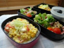おはようございますなんだか今日は曇っていますね。今日のお弁当・たまご丼・レタス・きゅうり・かぶ漬・ツナ+ミックスベジ炒め・煮物  じゃがいも にんじん たまねぎ 揚げ・つくね・ミニトマト・貝柱バター炒めなんだかずいぶん昨日のおかずとかぶって...