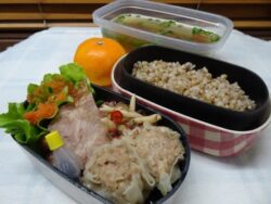 おはようございますこれから暑くなるらしいですよ。今日のお弁当・鯵のハンバーグ・小松菜+揚げ煮びたし・ネギチャーシュー・きゅうり浅漬け・ミニトマト・たるたるたまご・のりたまごはん・豆腐味噌汁・ニューサマー鯵を叩いてハンバーグに。実は鯵のなめろ...