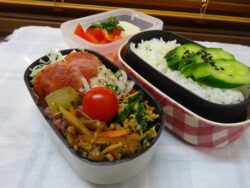 おはようございます次第に青空が見えて来ましたよ。今日のお弁当・酢飯 たくわん 山人漬・豚肉+ナスコチュジャン炒め・ブリ大根・きゅうりシソの実漬・ミニトマト・味噌汁 白菜 豆腐 しめじ・みかん・プラム今日のきゅうり漬は、シソの実がたくさん...