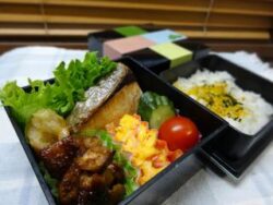 おはようございます今にも雨が降りそうなお天気です。今日のお弁当・豆腐入り照り焼きハンバーグ・サバ塩焼き・きゅうり・ミニトマト・ポテト+ツナ+ミックスベジサラダ・厚揚げ肉みそ・レタス・晩柑・のりたまごはん品数多い割に、センス無し。あ~…。ふと...