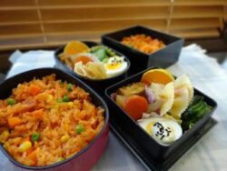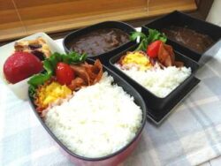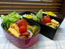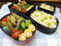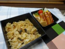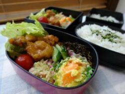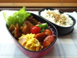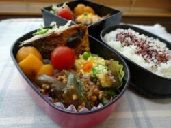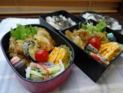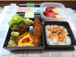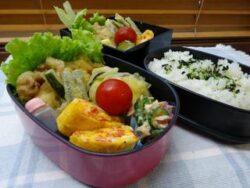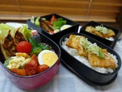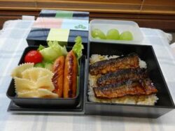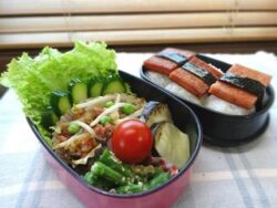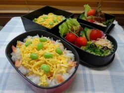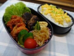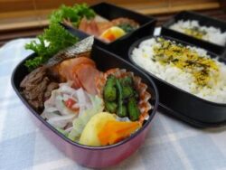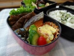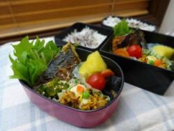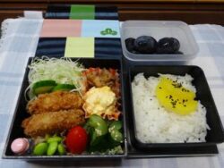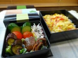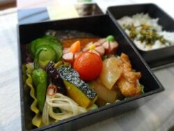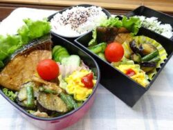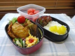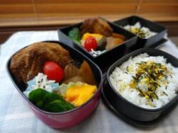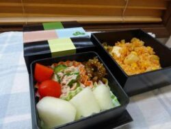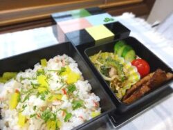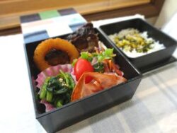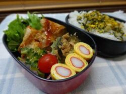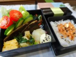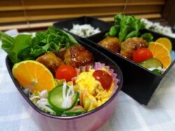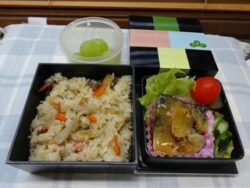 お弁当 照り焼き肉団子のお弁当と、柿の葉寿司