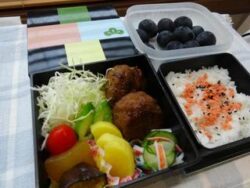 おはようございますなんだか台風が近づいているとか…。今日のお弁当・照り焼き肉団子・レタス・ミニトマト・きゅうり+カニカマ酢の物・スクランブルエッグ・みかん・青菜ふりかけごはんあ~もう一品何か作りたかったけど…。頭が回りませんでした。残念。お...