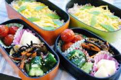 おはようございます!ネット復活して、久しぶりにたくさんのお友達とおしゃべりできて嬉しいtontonです。皆さんありがとう!さてさて今日のお弁当・鮭+胡麻+絹さや+錦糸卵のちらし寿司・ひじき煮・きゅうりナムル・ミニトマトガーリック炒め・りんご...