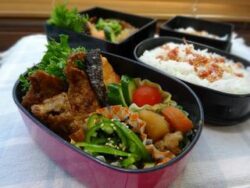 おはようございます今日も良いお天気ですねぇ。うっとり。風邪も爽やかだし、言うことないですわ今日のお弁当・豚肉ソース焼き・レタス・肉じゃが・ミニトマト・きゅうり糠漬け・ピーマン昆布・塩鮭・カリカリ梅じゃこふりかけごはん・晩柑画像に映っていませ...