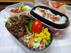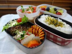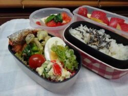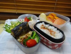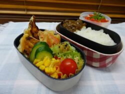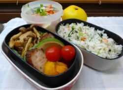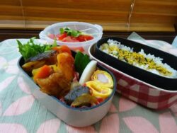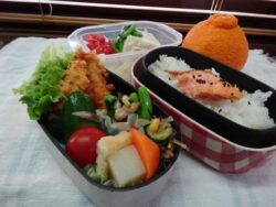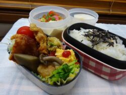 おはようございます桜、そろそろ終わりですね…。今日のお弁当・鶏天・フリルレタス・ミニトマト・きゅうり+茗荷漬・大根+にんじん+油揚げ煮・小松菜+しいたけ+油揚げゆず胡椒お浸し・コーン+きゅうり+切干大根和え・塩鮭+ごまごはん・玉ねぎ+豆腐+...