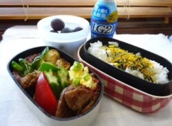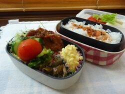 鶏肉とナスの炒めものお弁当と、早く言ってよ