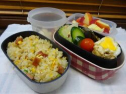 おはようございます今日は暖かくなるようですね。今日のお弁当・チャーハン  カニカマ ベーコン ネギ・菜の花おひたし・ミニトマト・牛肉 里芋 しめじ ごぼう にんじん煮・白菜カニカマ中華サラダ・ヨーグルト  マヌカハニー 杏・玉ねぎ+豆腐+ト...