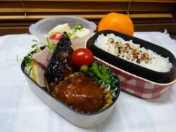 おはようございます今朝は雲多めです。今日のお弁当・ハンバーグ・千切りキャベツ・鯖みりん干し焼き・ミニトマト・ハム・インゲン胡麻和え・梅わかめふりかけごはん・玉ねぎ+豆腐+トマトサラダ・ポンカン今日はハンバーグ。大好きなので楽しみです。昨晩は...