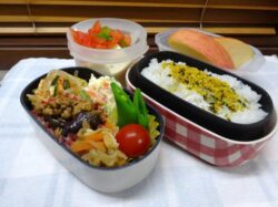おはようございます今日はこれから晴れるって話ですが。今日のお弁当・麻婆ナス・ささみ+急る+もやしキムチ和え・ポテサラ・スナップエンドウ・ミニトマト・切干大根煮・のりたまごはん・玉ねぎ+豆腐+トマトサラダ・りんごこれと言って、メインが見当たら...