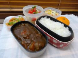 おはようございます今日は気持ち良く晴れそうですよ今日のお弁当・カレーライス・きゅうり漬・コーンバター・玉ねぎ+豆腐+トマトサラダ・ジューシーオレンジ今日のお弁当は、カレーライスでさくっと簡単に。フルーツは、熊本の新しい品種、ジューシーフルー...