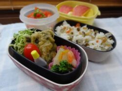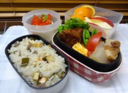 なんちゃって中華おこわのお弁当と、たけのこご飯