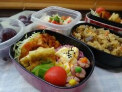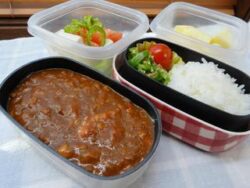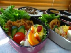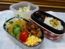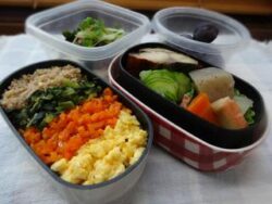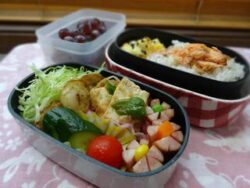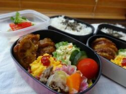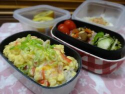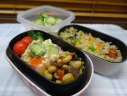おはようございますいいお天気ですねー今日のお弁当・煮豚・やみつききゅうり・煮物 里芋 こんにゃく にんじん ごぼう・ゆで卵・ふりかけごはん・みかん・豆腐サラダ トマト 豆腐 玉ねぎ 貝割れ・りんご みかんこの三連休、土日は、tonton...