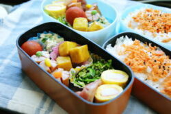おはようございます!地震や台風の天災が続くこのごろですが、ようやく夏らしい青空が帰ってきました。今日のお弁当・千切りキャベツ・ハムかつ・きゅうり塩もみ・たまご焼き・なす+豚味噌いため・梅菜ご飯昨日からお盆休みのtontonです。家族全員、家...