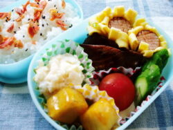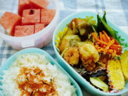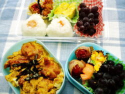 おはようございます!今日は久しぶりの雨・・・懐かしい気もします・・・今日のお弁当・お花ウィンナ・おくらのたまご焼・麻婆なす・一口餃子 冷食・きゅうり+ミニトマト・ふりかけこにぎり たらこ&のりたま・巨峰昨日のお弁当の時、お友達に「○ちゃんの...