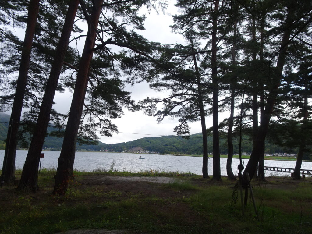 早朝、温泉に入る前に目の前の木崎湖を見にお散歩