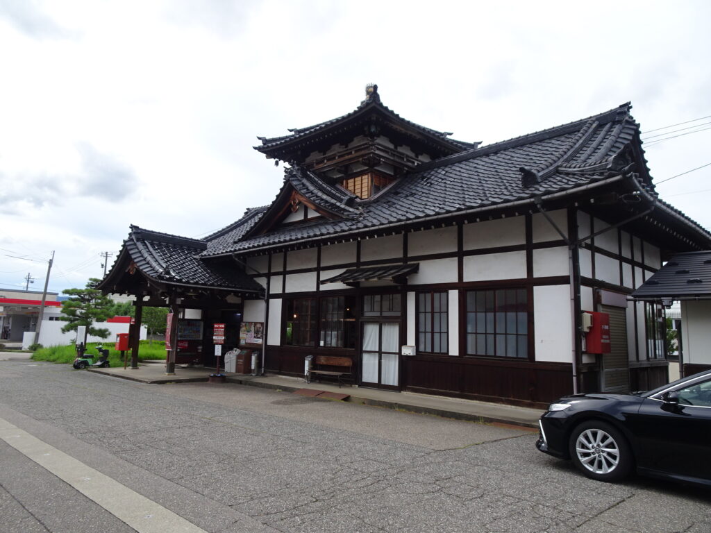 ここは、旧加越線の駅舎です。中は物産展示館になっています。