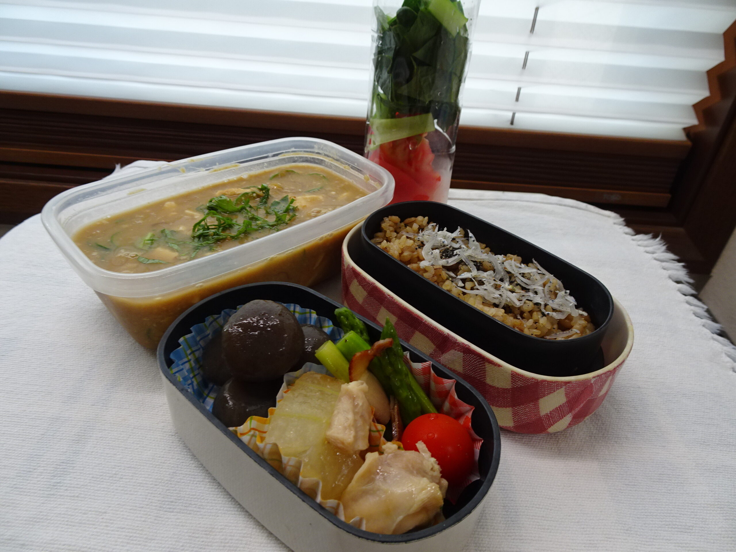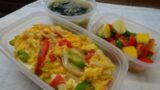 冷蔵庫の残り物で何とか作ったお弁当です。ふぅ。